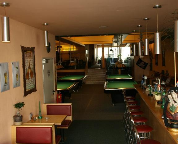 9 Billardtische, Snooker, 4 Dartkästen, Tischfußball, Großleinwand, Eurosport / DSF. Firmenturniere nach telefonischer Vereinbarung. Geeignet von 10-70 Jahre.