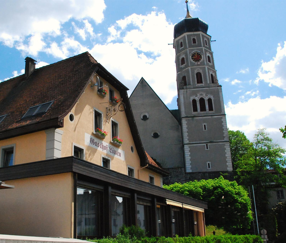 Unser Gasthof liegt im Herzen des Vorarlberger Oberlandes, in zentraler Lage am Fuße der alten Pfarrkirche sowie vis à vis des alten Stadttores im Zentrum von Bludenz.