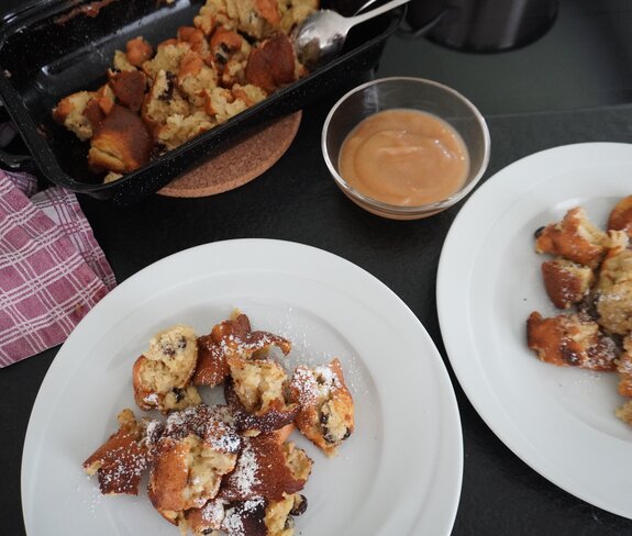 - Optional: Butterflöckchen und etwas Kristallzucker darüberstreuen und im Backofen nochmals kurz karamellisieren lassen.