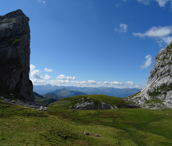 Am nächsten Tag aufsteigen über den Öfapass zum Schweizertor, einem markanten Fenster und Grenzübergang in den Prättigau/CH. Von hier geht es weiter über das Verajoch Richtung Lünersee. Von der Lünersee Alpe dann entlang des Uferweges zur Bergstation der Lünerseebahn. Von hier entweder über den Bösen Tritt zur Talstation absteigen oder mit der Lünerseebahn ins Tal fahren. Von der Talstation zu Fuß über den Schattenlagantweg zurück nach Brand Innertal oder alternativ mit dem Bus, Linie 580.