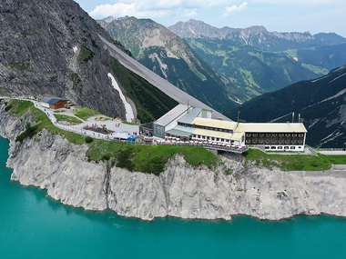 Von der Douglass Hütte links über die Staumauer hinauf zur Lünerkrinne. Von dort entlang des Lüner- und des Gipsköpflewegs bis zur Heinrich-Hueter Hütte und weiter auf dem Zimbajochsteig zur Sarotla Hütte, der vierten Übernachtungsmöglichkeit.