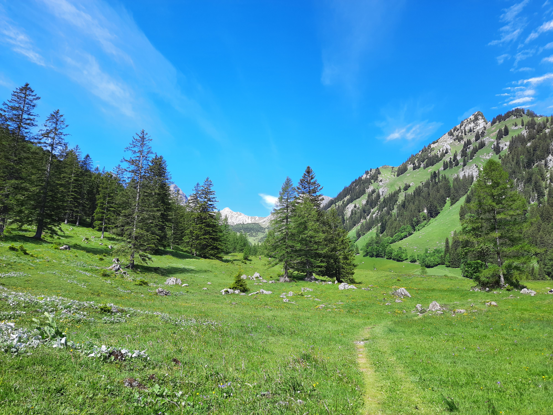 Wanderung durch das unberührte Zalimtal vorbei beim Glingabrunnen zur Unteren Brüggele Alpe.