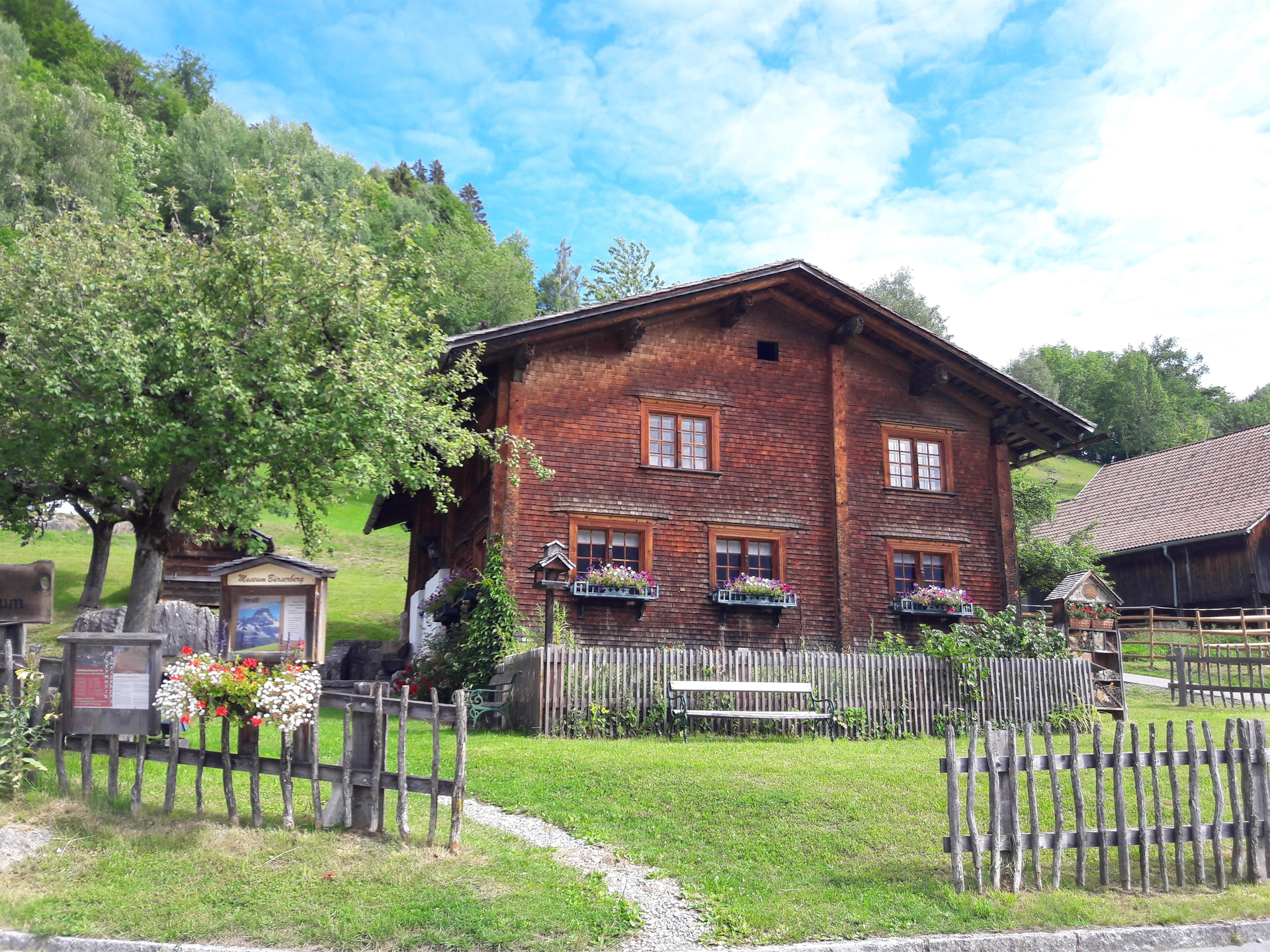 The museum itself is a living testament to local heritage: the over 300-year-old Paarhof Buacher is a remarkable example of Walser settlement culture in the Brandnertal. Originally located in the Tschapina area, this historic farmhouse was carefully dismantled between 1991 and 1993 and reconstructed in the village center of Bürserberg, in the Matin area. Since its opening in 1993, the building has housed the village’s local museum.