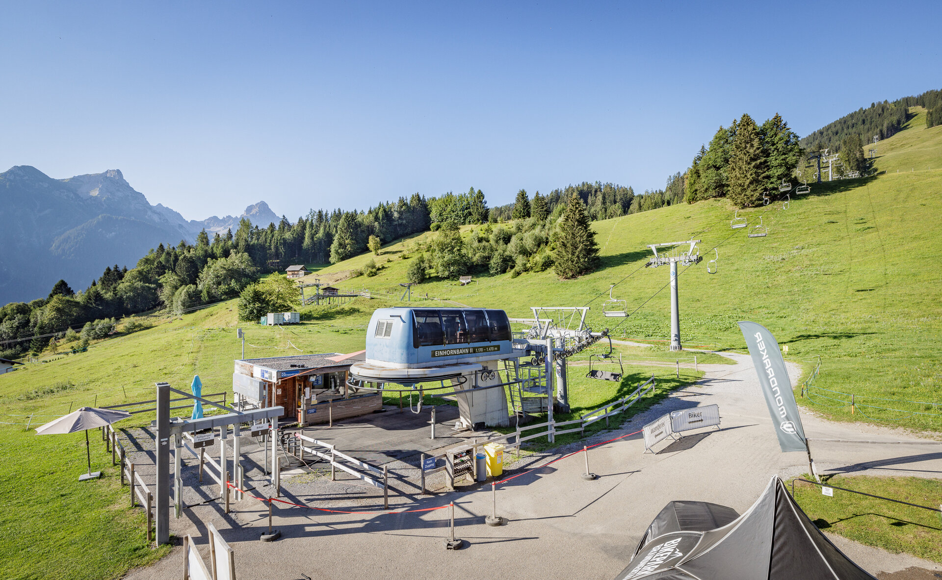 During the construction phase, the existing Loischkopfbahn will remain open for uphill rides until August 24. The Einhornbahn II will not be in operation this summer.