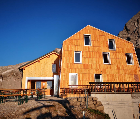 The Totalphütte is situated at 2,385 m above the Lünersee on a small plateau, surrounded by magnificent climbing and hiking mountains. An ideal starting point for climbing the Schesaplana. Starting from the Lünersee, the Totalphütte can be reached in approx. 1 h to 1 h 30 min and the ascent to Totalp is no problem even for children and older mountain enthusiasts.
