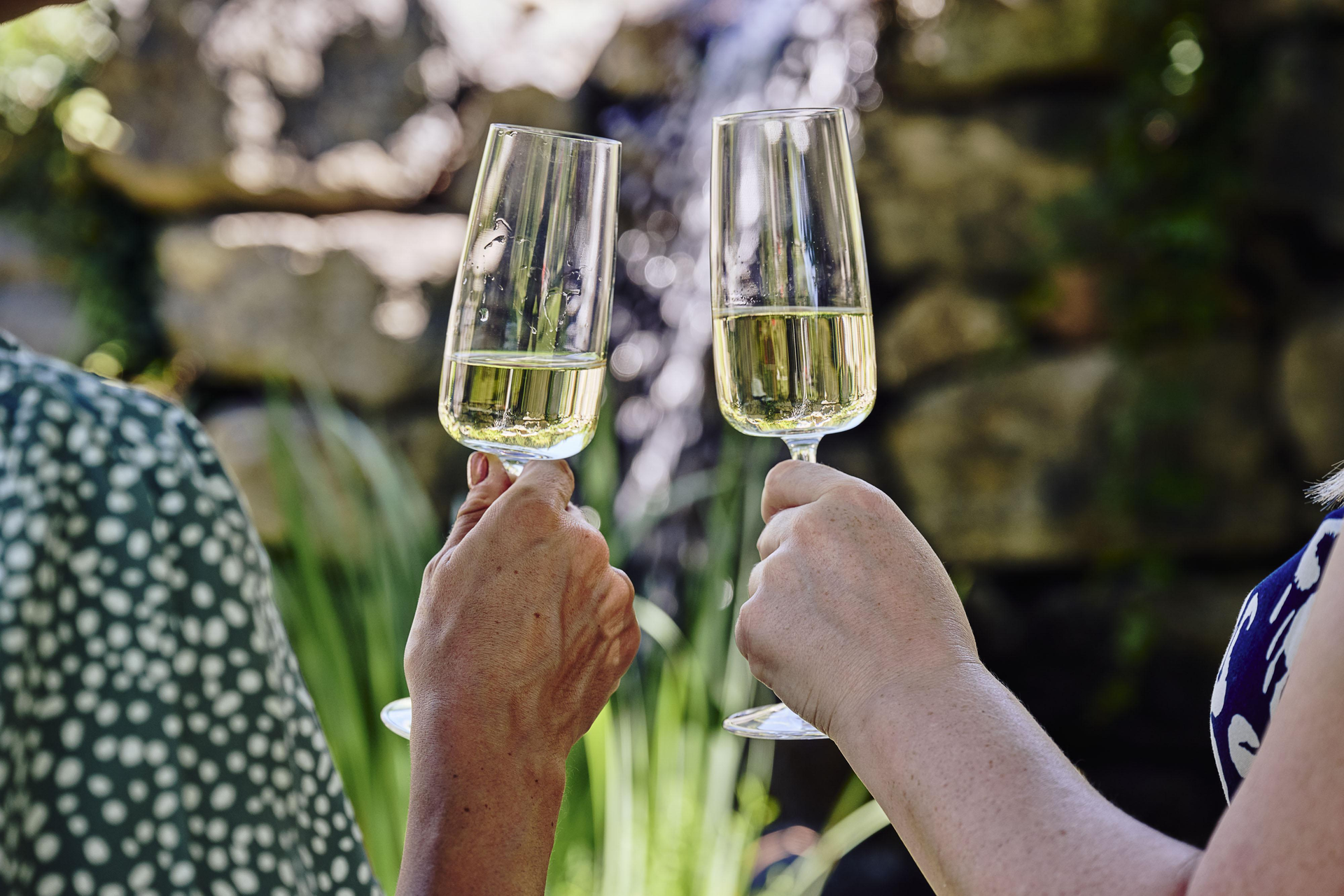 5. Genussstation: Dessert + 1 Glas Wein, Kaffee oder alkoholfreie Alternative durch Traube Braz | Im Garten des Hotels Traube Braz Alpen.Spa.Golf.Hotel mit Blick zum Masonwasserfall