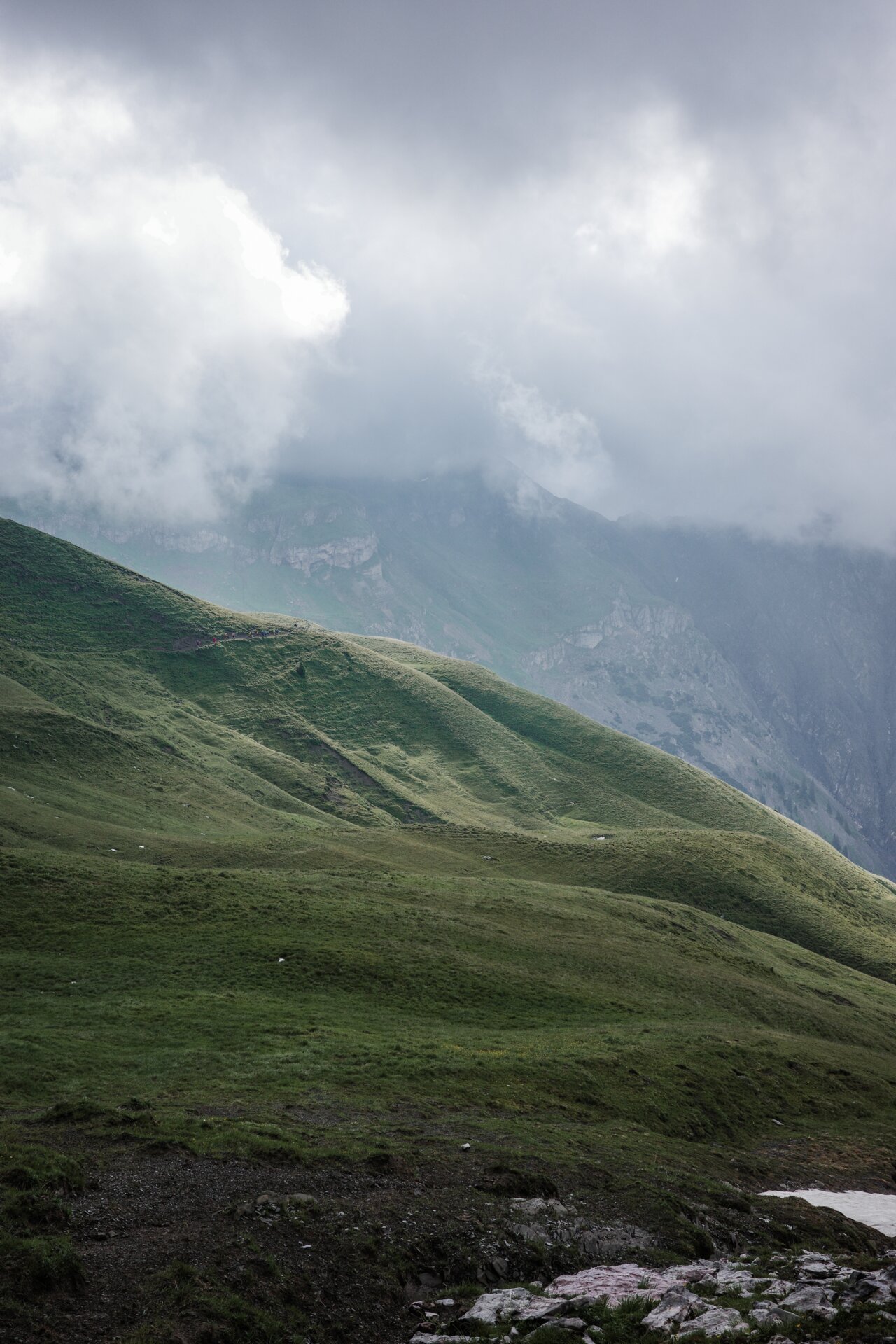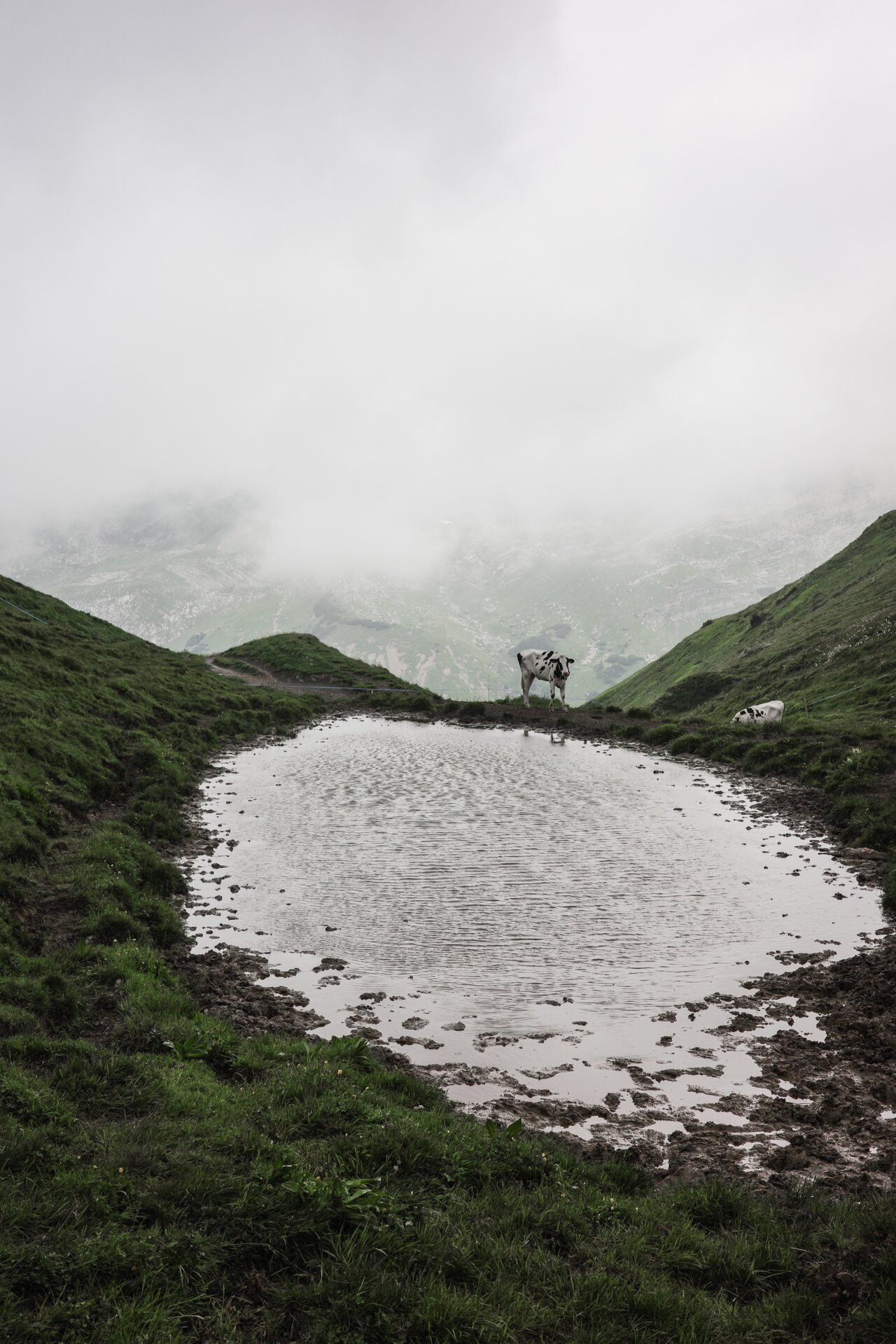 Ein typischer Tag der drei beginnt früh, oft schon um 6:00 Uhr. Täglich müssen die Tiere gezählt und begutachtet werden, selbst an einem regnerischen und windigen Morgen wie heute. Fast 200 Rinder grasen auf den weitläufigen Flächen der Alpe. Mit geübtem Blick überprüfen Daniel und Aurel zweimal täglich die Gesundheit der Tiere und legen dabei bis zu 30 Kilometer und 1.700 Höhenmeter zurück – ein anstrengender, aber erfüllender Tag.