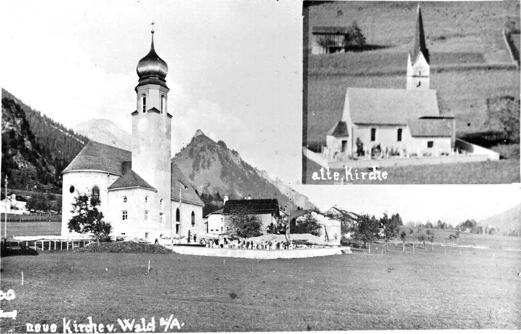 Nachdem durch den Bau der Arlbergbahn 1880 bis 1884 und insbesondere den Bau des Spullerseekraftwerks 1920 bis 1925 die Bevölkerung von Wald massiv zugenommen hatte, wurde ein Neubau nötig. Der damalige Kurat Johann Josef Fiel nahm diesen in wirtschaftlich schwierigen Zeiten 1930 in Angriff. Die Pläne lieferte der bekannte Architekt Willibald Braun aus Bregenz. Einen modernen Kirchenbau wollte er der dörflichen Bevölkerung offenbar nicht zumuten und entschied sich daher für einen eher konservativen, neubarocken Stil.