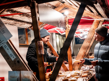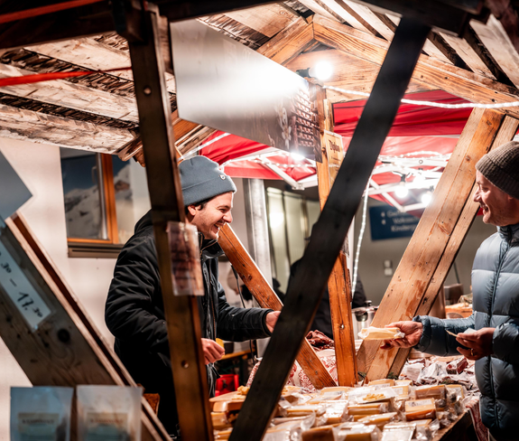 Nimm ein Stück Bregenzerwald mit nach Hause. Ob Käse, Würste, Schnaps oder ein guter Speck vom Bauern aus der Region – hier ist für jeden etwas dabei. Für musikalische Unterhaltung und dein leibliches Wohl vor Ort ist mit Raclette und Glühmost bestens gesorgt.